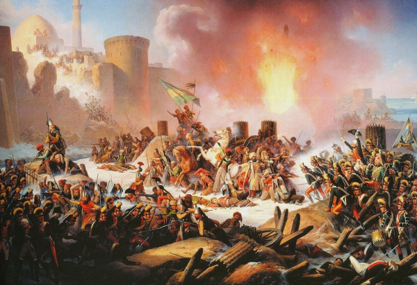 По положению неба и Дуная мы можем догадаться, что Измаил не сдался. Он был взят штурмом. Все 35 тыс. человек гарнизона были убиты, либо взяты в плен. Потери российских войск были в 7 раз меньше.