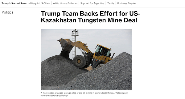 Администрация президента США Дональда Трампа ведёт переговоры с властями Казахстана о разработке месторождений вольфрама. Это крупнейшие в мире ещё не разработанные месторождения, пишет Bloomberg.
